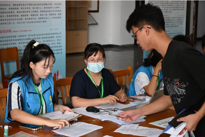 爱心服务站:我们在校门口、教学楼门口都安排了可爱的学长学姐驻守爱心服务站,站点备有糖果、饼干和矿泉水,大家累了就能坐下来歇会儿,喝口茶再继续办理手续。
